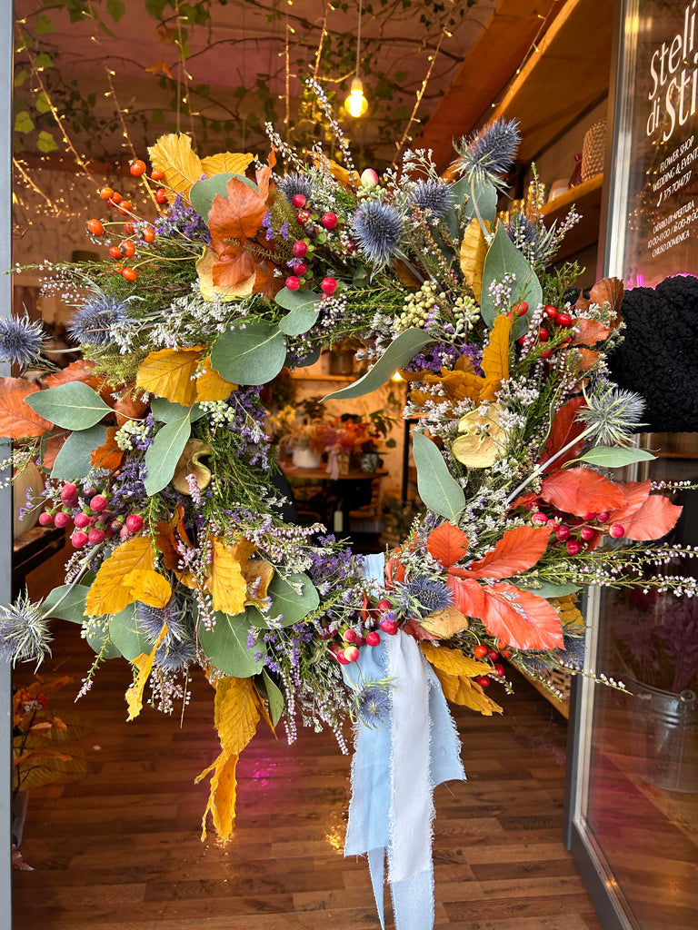 La nostra collezione di ghirlande di fiori secchi e stabilizzati realizzate a mano, da esterno.