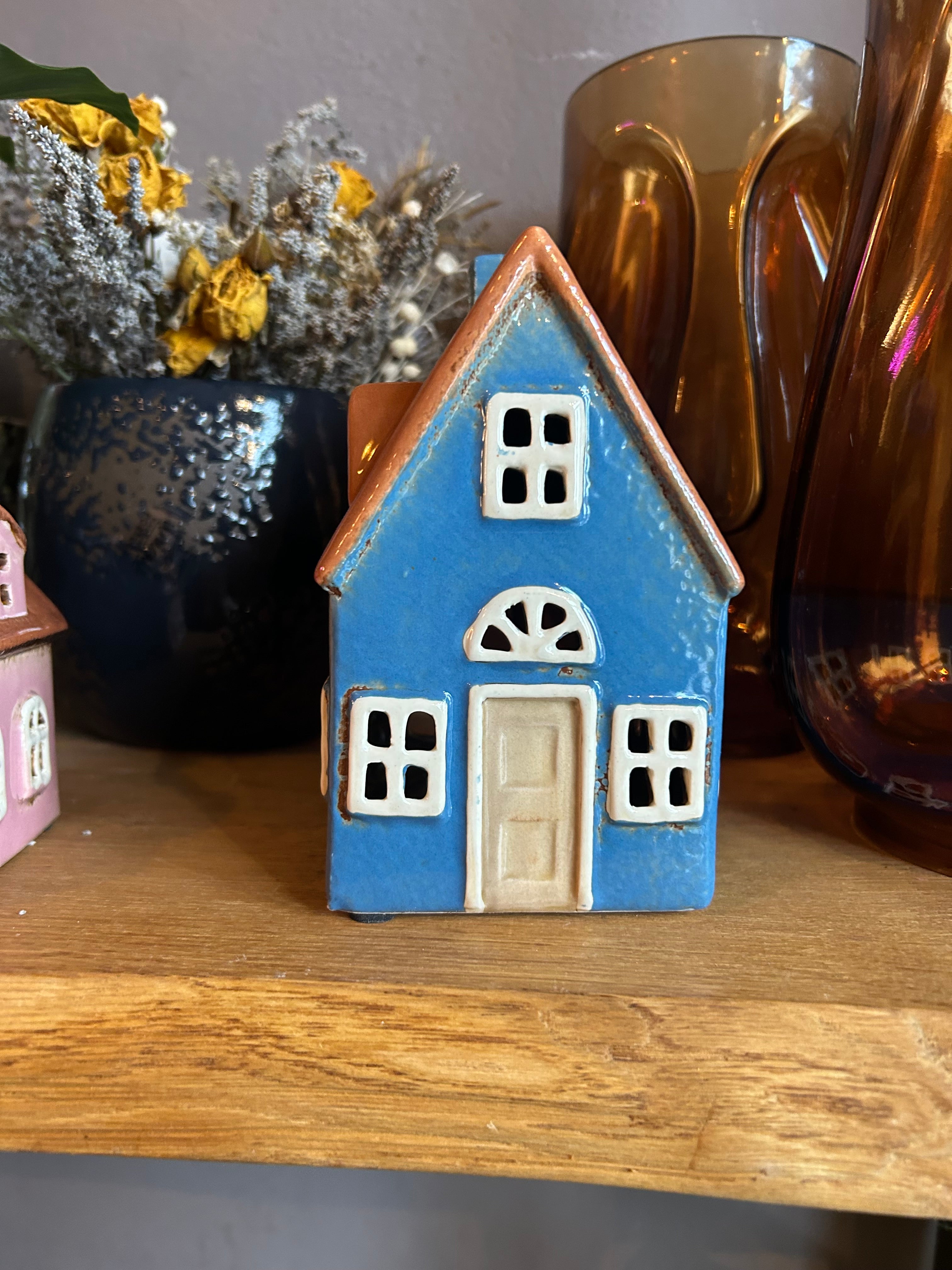 casetta porta tea light in ceramica